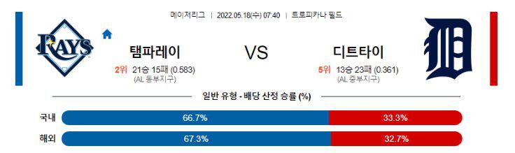 【MLB】 5월18일 탬파베이 vs 디트로이트