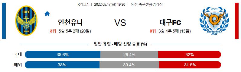 【K리그1】 5월 17일 인천 유나이티드 vs 대구 FC