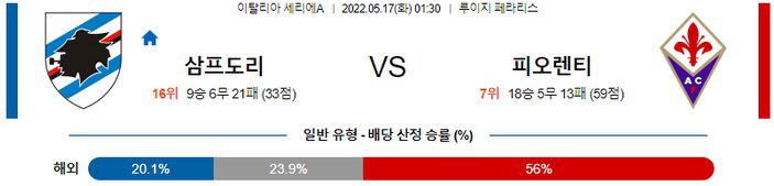 【세리에A】 5월 17일 삼프도리아 vs 피오렌티나