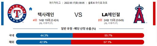 5월 17일 09:05 MLB 텍사스 : LA 에인절스