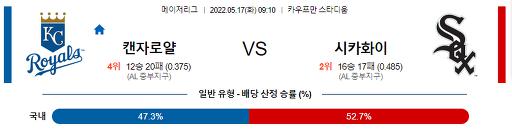 5월 17일 09:10 MLB 캔자스시티 : 화이트삭스