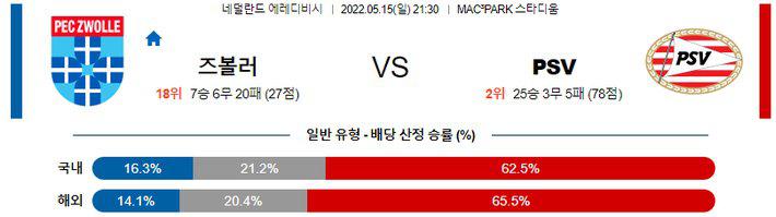 【Eredevisie】 5월 15일 즈볼레 vs PSV 아인트호벤