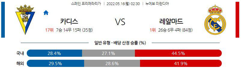 【Laliga】 5월 16일 카디스 vs 레알 마드리드