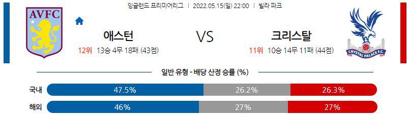 【EPL】 5월 15일 애스턴 빌라 (아스톤 빌라) vs 크리스탈 (크리스털) 팰리스
