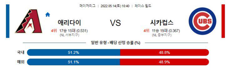 【MLB】 5월14일 애리조나 vs 시카고컵스