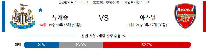 【EPL】 5월 17일 뉴캐슬 유나이티드 vs 아스날