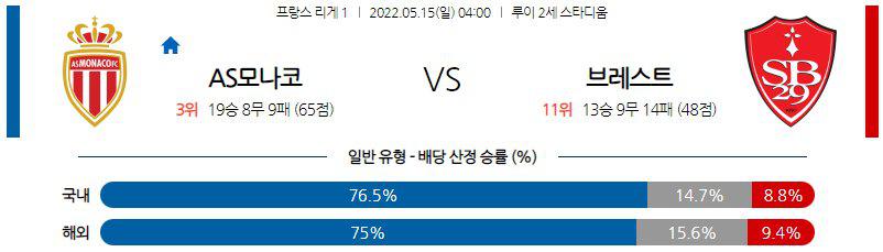 【리그앙】 5월 15일 모나코 vs 스타드 브레스트