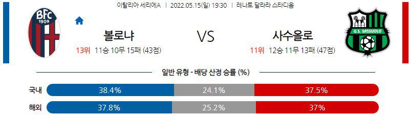 【세리에A】 5월 15일 볼로냐 vs 사수올로 칼초