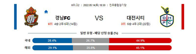 양 팀의 최근 득, 실점이 잦아 직전 5경기 중 4경기에서 오버(2.5 기준)가 나온 점을 고려하면 오버(2.5 기준)의 확률이 높겠다. 또한 후술하겠지만, 대전의 최근 흐름은 매우 좋다. 특히 공격진의 결정력은 갈수록 더 좋아지고 있다. 경남도 최근 3연승을 거두긴 했으나 FA컵과 '꼴찌' 안산과의 경기가 포함된 기록이다. 무엇보다 수비적으로 집중력이 매우 떨어져 있는 상황. 대전 승 / 오버(2.5 기준)를 추천한다.