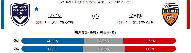 【리그앙】 5월 15일 지롱댕 보르도 vs 로리앙