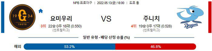 주니치를 상대로 7경기 등판에서 1.94 평균자책점을 기록하며 상대전에 강점을 보인 토고 쇼헤이 투수가 평소 보다 충분한 재충전의 시간을 보내고 표적등판 하는 경기다. 또한, 연속 안타에 의한 득점 보다는 일발장타에 의한 득점이 나와야 하는 선발 매치업이 되는 만큼 장타력에서 앞서는 요미우리 타선이 유리하다고 생각 된다. 요미우리 승리 가능성을 추천 한다.