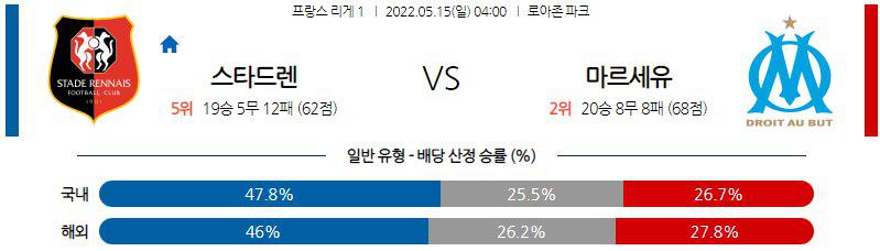 【리그앙】 5월 15일 스타드 렌 vs 올림피크 마르세유