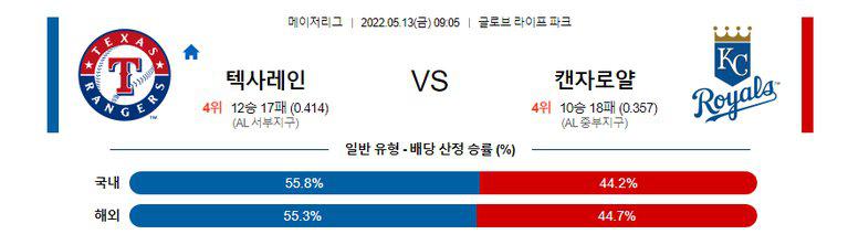 【MLB】 5월13일 텍사스 vs 캔자스시티
