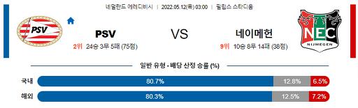 5월12일 03:00 아인트호벤 네이메헌 에레디비시◈ 아인트호벤 (리그 2위 / 패승승승무)