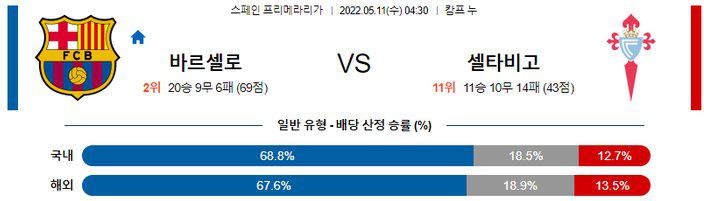 【Laliga】 5월11일 바르셀로나 vs 셀타 비고