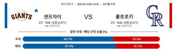 【MLB】 5월10일 샌프란시스코 vs 콜로라도