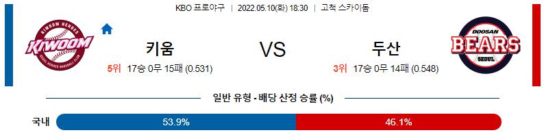 【KBO】 5월10일 키움 히어로즈 vs 두산 베어스