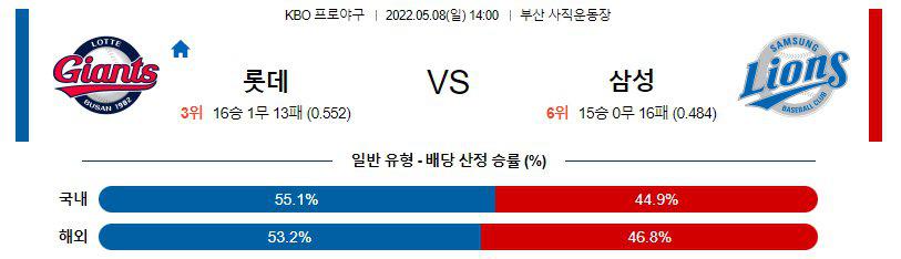 한국프로야구 롯데 자이언츠 삼성 라이온즈의 경기가 오는 일요일(5/8) 14:00 롯데의 홈 구장인 부산 사직야구장에서 열릴 예정입니다. 롯데 자이언츠 삼성 라이온즈 양 팀 간의 이번 주중 3연전 가운데 마지막으로 펼쳐지는 경기입니다.