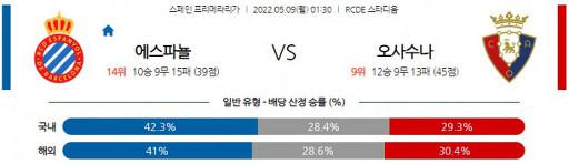 5월 9일 01:30 에스파뇰 vs 오사수나