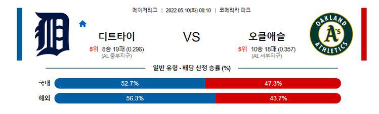【MLB】 5월10일 디트로이트 vs 오클랜드
