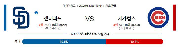 【MLB】 5월10일 샌디에고 vs 시카고컵스