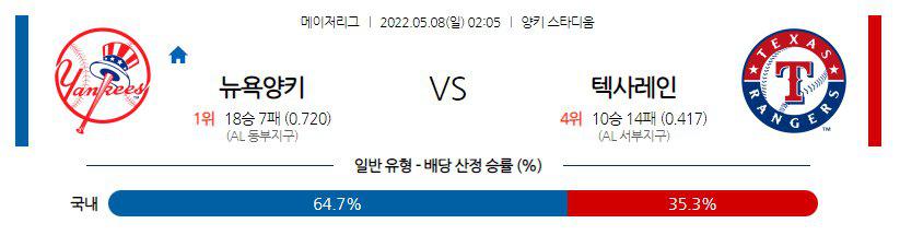 【MLB】 5월8일 뉴욕양키스 vs 텍사스