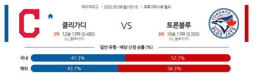 【MLB】 5월8일 클리블랜드 vs 토론토