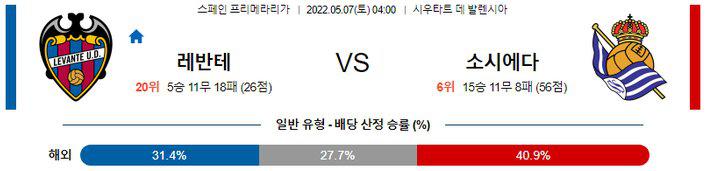 【프리메라리가】 5월 7일레반테 vs 레알 소시에다드