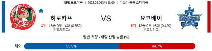 지난시즌 상대전 6경기에서 4승 무패, 1점대 평균자책점을 기록하는 강점을 보였던 오세라 다이치 투수는 올시즌 요코하마와 2차례 만남에서도 승리를 기록했다. 상대성을 무시할수 없는 경기다. 하로시마 승리 가능성을 추천 한다.