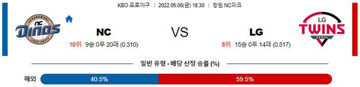NC는 목요일 원정에서 삼성 상대로 2-5 패배를 기록하며 시리즈 1승2패를 기록했다. 2연패 + 최근 5경기 1승4패 흐름 속에 시즌 9승20패 성적. 8안타, 병살타 2개, 6개 잔루를 기록하는 가운데 상대의 호수비에 막혔던 경기. 반면, LG는 목요일 홈에서 두산 상대로 4-9 패배를 기록하며 시리즈 1승2패를 기록했다. 2연패 흐름 속에 시즌 15승14패 성적. 2개 홈런포를 쏘아 올렸지만 믿었던 켈리 투수가 수비 도움을 받지 못하는 가운데 5이닝 8실점(6자책)으로 무너진 차이를 극복하기는 힘들었던 경기.