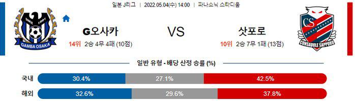 【J리그】 5월 4일 감바 오사카 vs 콘사도레 삿포로