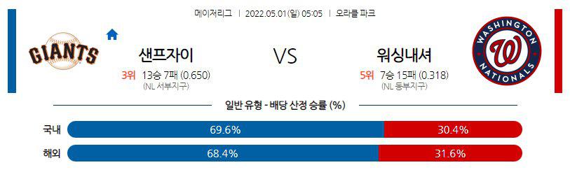 【MLB】 5월1일 샌프란시스코 vs 워싱턴