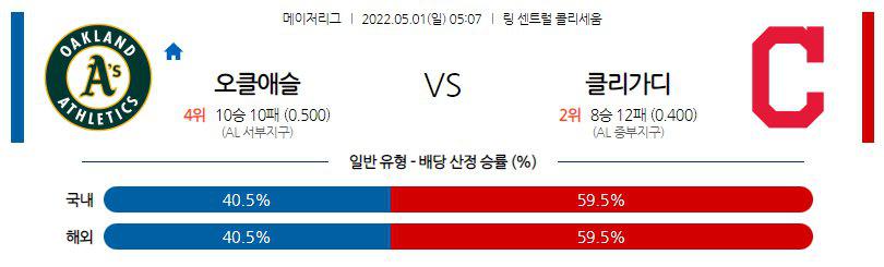 【MLB】 5월1일 오클랜드 vs 클리블랜드