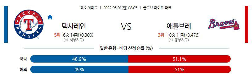 【MLB】 5월1일 텍사스 vs 애틀랜타