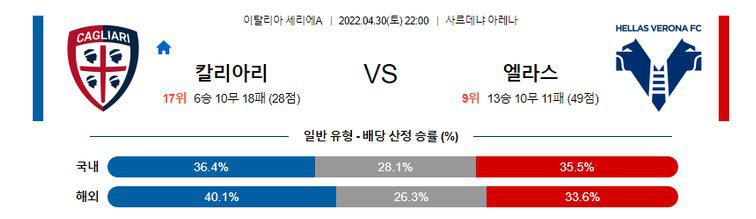【세리에A】 4월30일 칼리알리 vs 엘라스 베로나
