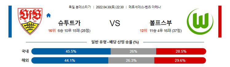 【분데스리가】 4월30일 슈투트가르트 vs 볼프스부르크