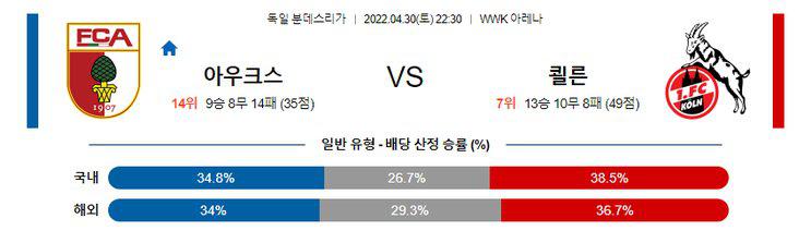 【분데스리가】 4월30일 아우크스부르크 vs 쾰른