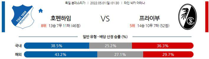열람중 【분데스리가】 5월 1일 호펜하임 vs 프라이부르크 2022.04.30 287