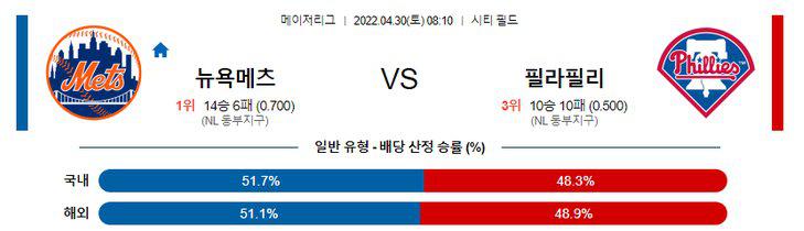 【MLB】 4월30일 뉴욕메츠 vs 필라델피아