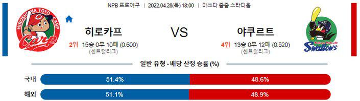 【NPB】 4월 28일 히로시마 vs 야쿠르트