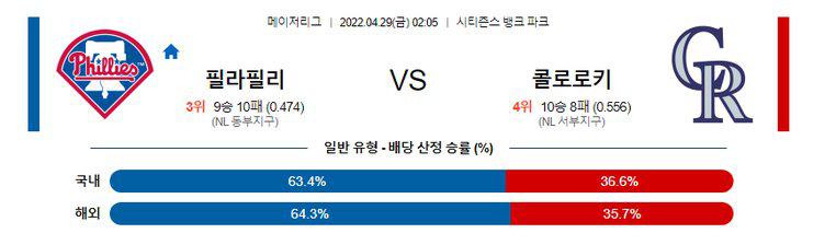 【MLB】 4월29일 필라델피아 vs 콜로라도