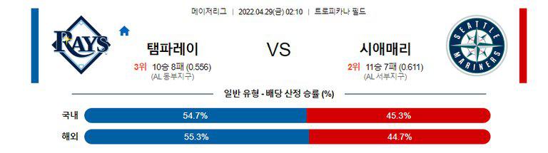 【MLB】 4월29일 탬파베이 vs 시애틀