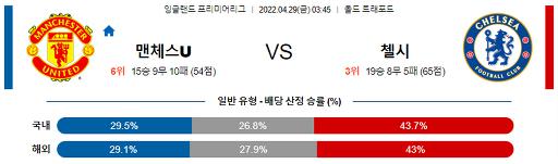 첼시의 최근 7경기 중 5경기에서 오버(2.5 기준)가 나온 점, 맨유의 최근 3경기 중 모든 경기에서 오버(2.5 기준)가 나온 점을 고려하면 오버(2.5 기준)의 가능성이 매우 높겠다. 또한 후술하겠지만, 맨유는 최근 흐름이 너무나도 좋지 않다. 특히, 상위 4개팀과의 7차례 맞대결에서 단 1승밖에 거두지 못하고 있다. 여기에 공격진의 컨디션이 너무나도 좋지 않으며 수비진도 최근 3경기에서 9실점을 허용하고 있다. 반면 첼시는 최근 5경기에서 4승을 거두고 있으며 이번 시즌 홈 승리(8승)보다 원정 승리(11승)가 더욱 많다. 동기부여가 떨어질 대로 떨어진 맨유의 패배를 예상한다. 첼시 승 / 오버(2.5 기준)를 추천한다.