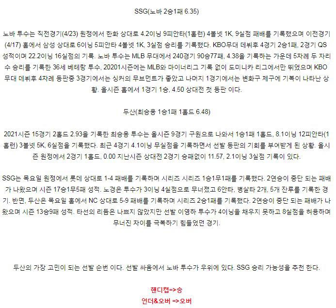 【KBO】 4월 29일 SSG vs 두산