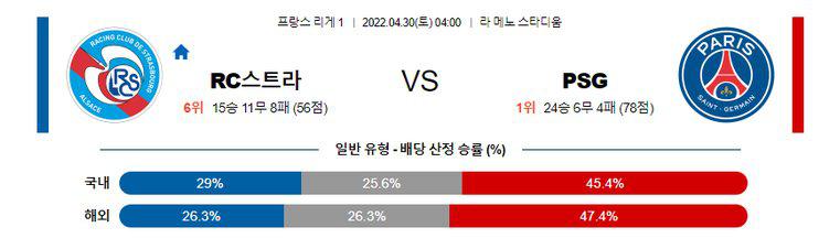 【리그앙】 4월30일 스타르스부르 vs 파리생제르망
