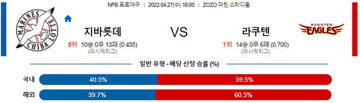 【NPB】 4월 27일 지바롯데 vs 라쿠텐