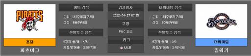 MLB분석 4월27일 피츠버그 밀워키