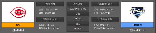 MLB분석 4월27일 MLB 신시내티 : 샌디에이고신시내티는 세인트루이스와의 3차전에서 승리하며 11연패를 탈출하였다.