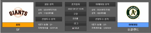 4월27일 MLB 샌프란시스코 : 오클랜드[샌프란시스코]