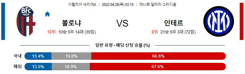 【세리에A】 4월28일 볼로냐 FC 1909 vs 인터 밀란● 볼로냐 (리그 13위 / 패무승무무)